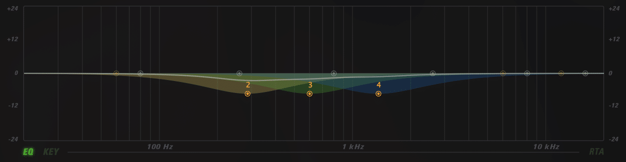 If you want to try this out, we recommend routing all your mid-range heavy and sustained instruments (such as piano and guitars) to their own buss/aux. From there, you can place the active EQ of your choice on that aux and route your vocals to its sidechain input.