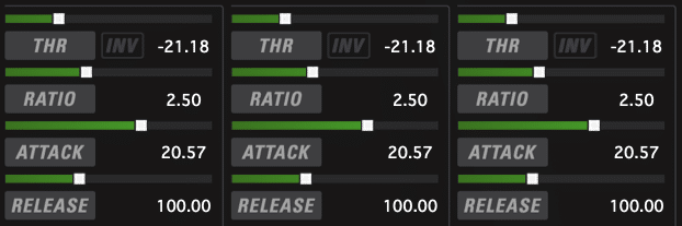 Remember, you wouldn’t want the listener to distinctly hear that there are instruments getting turned down every time the vocal comes in. Therefore, we recommend using this mixing technique sparingly so it’s not doing too much gain reduction.