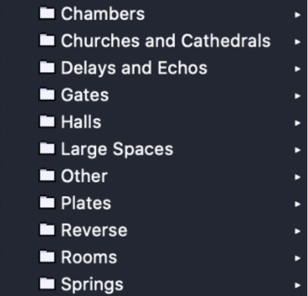 Many reverb plug-ins come loaded with impulse responses of different types of spaces. For example, one impulse response might model a plate reverb, while another might model the reverb within a cathedral! Alternatively, you could have a reverb plug-in that has no impulse responses, but does it’s best to model different spaces, such as plates and rooms.