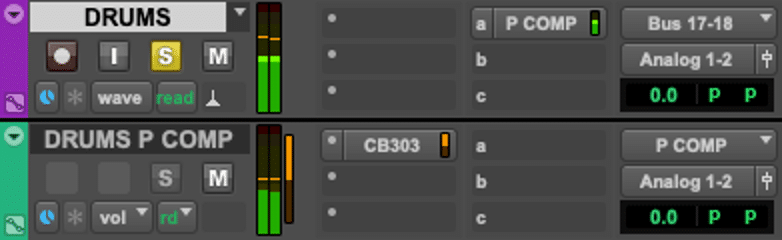 Parallel compression is the second most common compression routing method. If you don’t already know, parallel compression is the process of compressing a source in a separate track, and then mixing the compressed track with the original track.