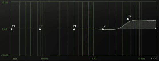The term “air” refers to the portion of the frequency spectrum that’s above around 16 kHz, so you can think of air as the extreme high-end in a source! Usually, air is added to a source by using a high-shelf filter as shown below, but it can also be added with a parametric EQ curve. Try both and see what you like!