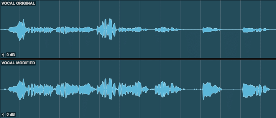 To see this example in action, check out the screenshot above! The top waveform is the original vocal track, while the bottom waveform is that same vocal track after using clip gain to make the performance more dynamically consistent. By doing this, we’ll have a much easier time getting our vocals where we want them when dialing in our rough balance, and our master buss compressor will thank us.