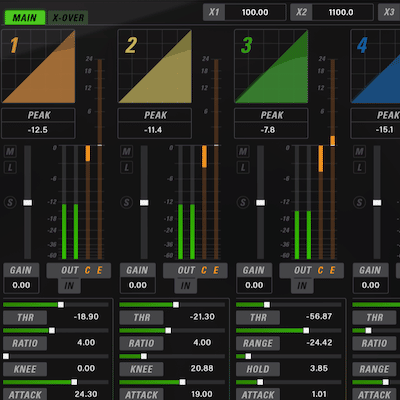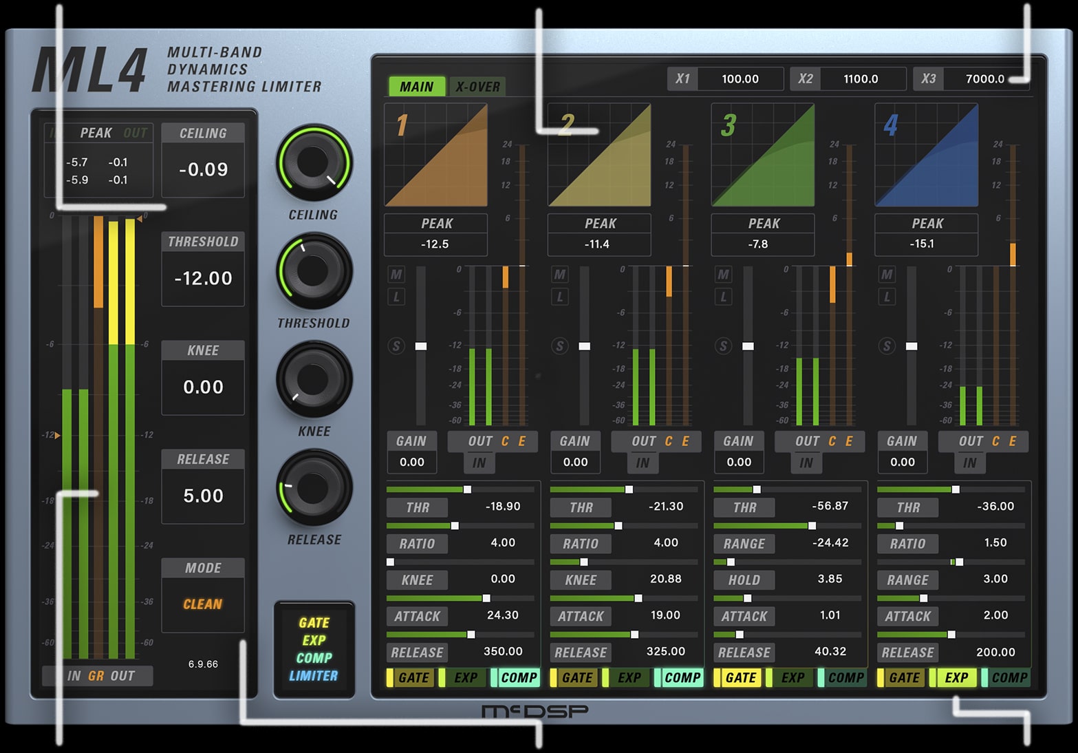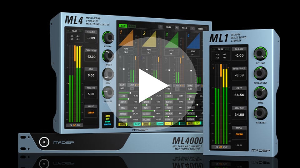 The ML4000 is a high-resolution limiter and multi-band dynamics processor designed for music, mastering, post, and live sound. The ML4000 is two plug-ins: ML1 (Master Limiter) and ML4 - (Multi-band Gate, Expander, and Compressor fed into the ML1 mastering limiter).